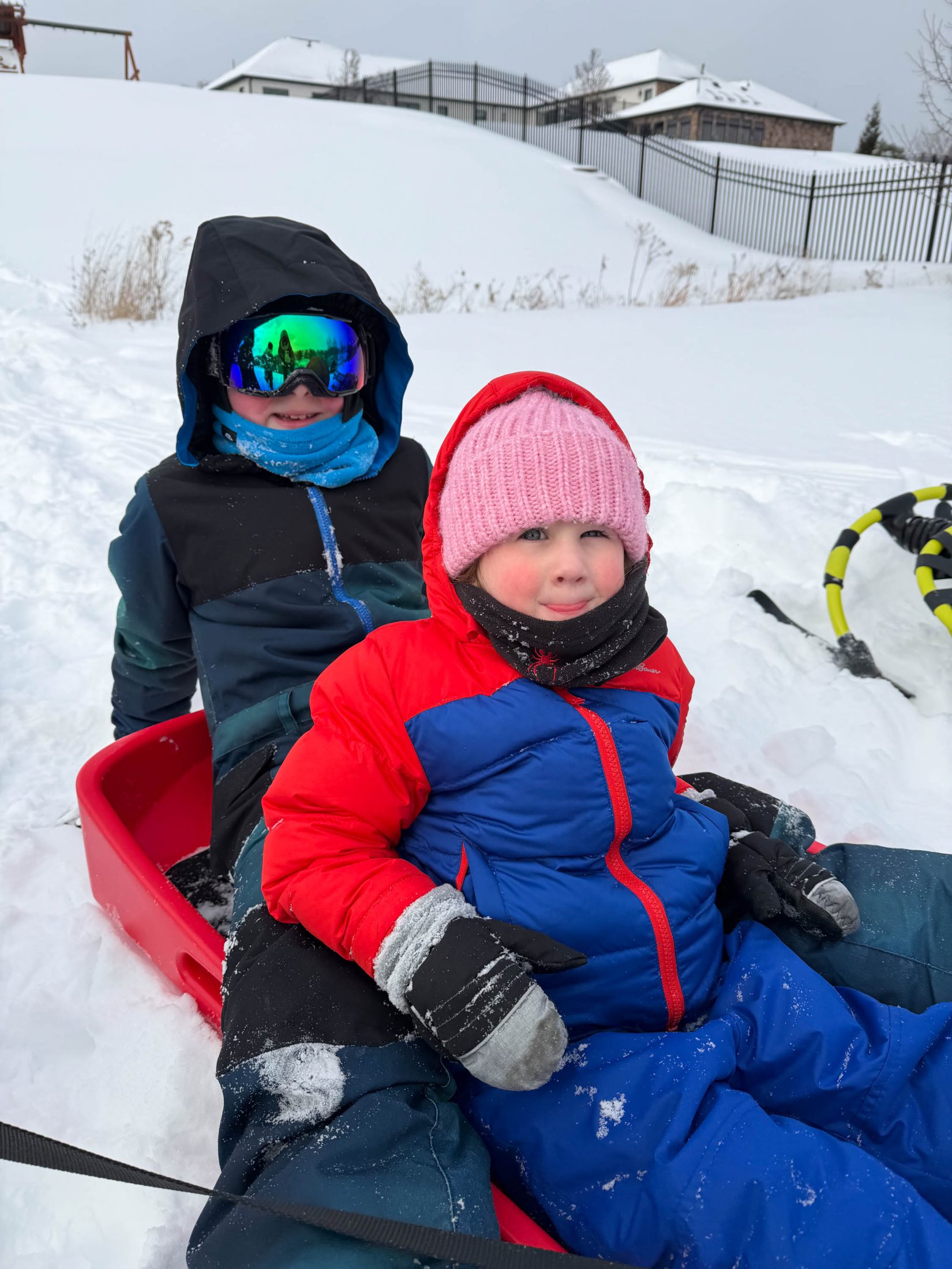 We had tons of snow, freezing cold and NO school. Well, school at home, but no school out of the house!