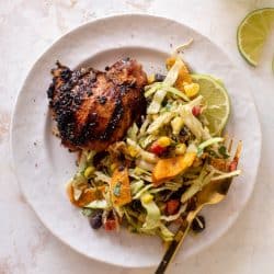 You can serve the chicken on the side or you can chop it up and add it directly to the slaw!