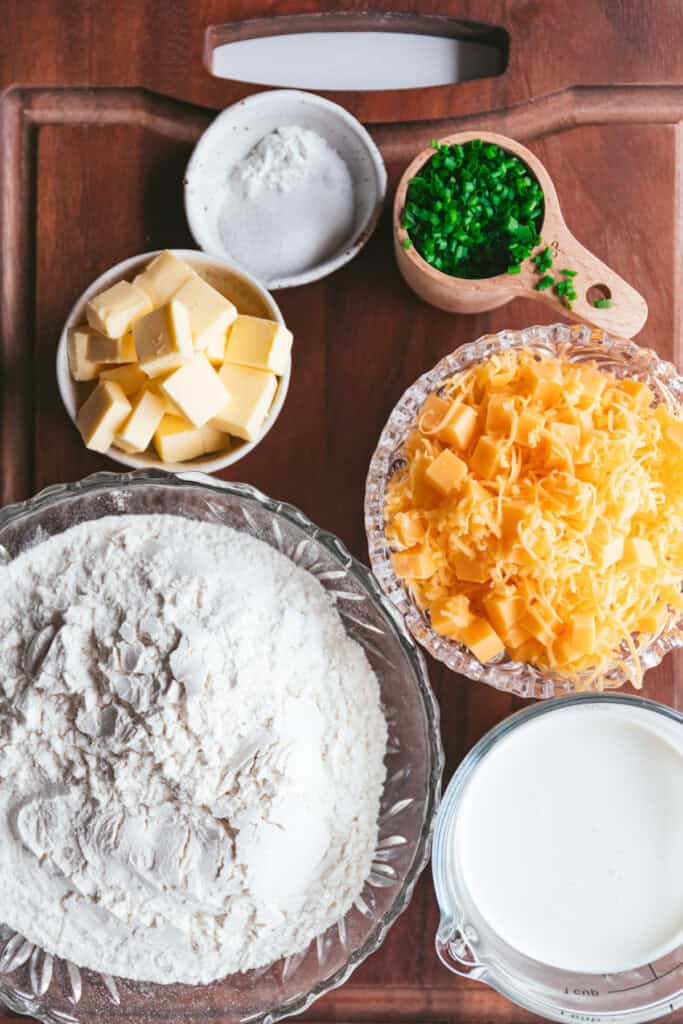 Here are the ingredients you’ll need for these Cheddar Chive Scones: